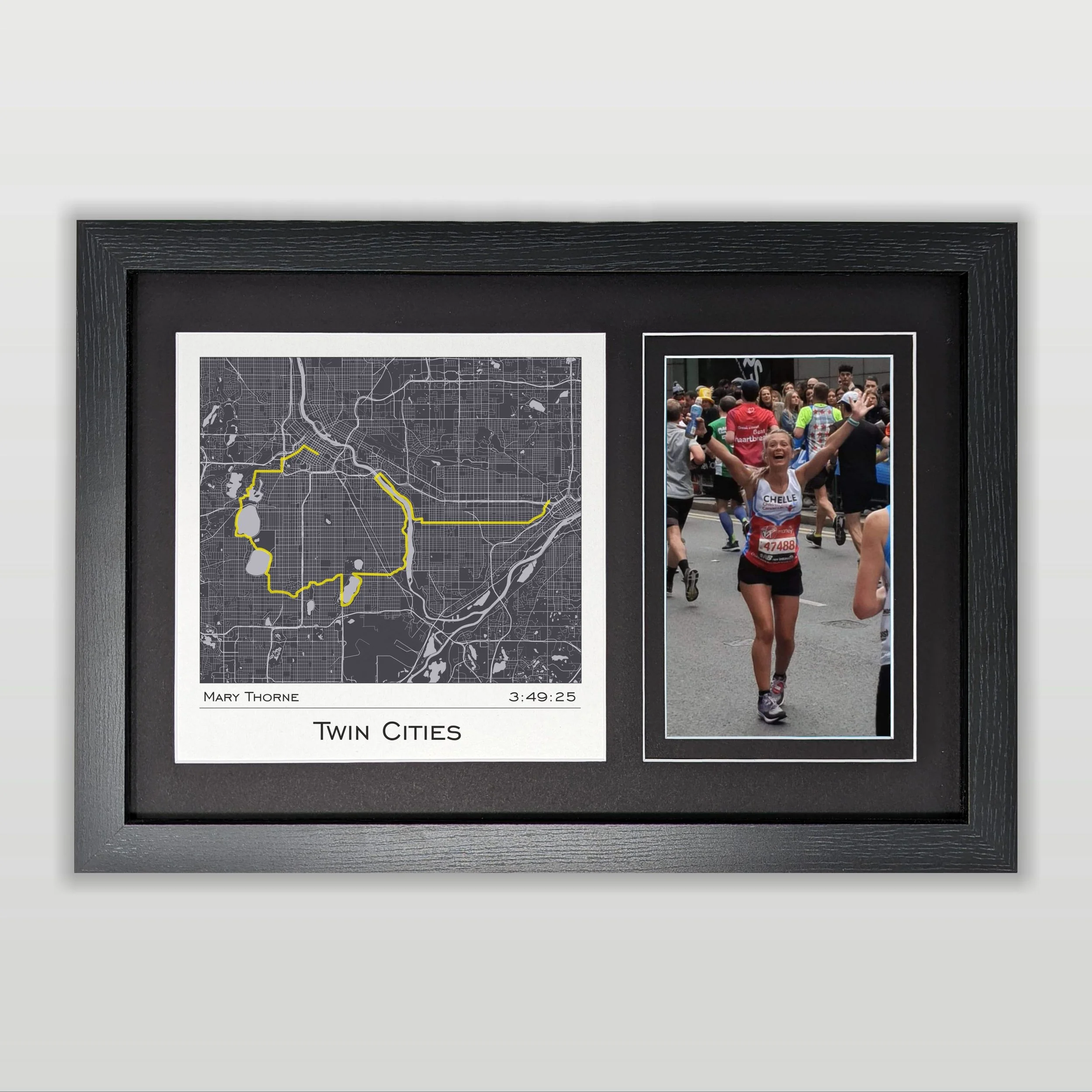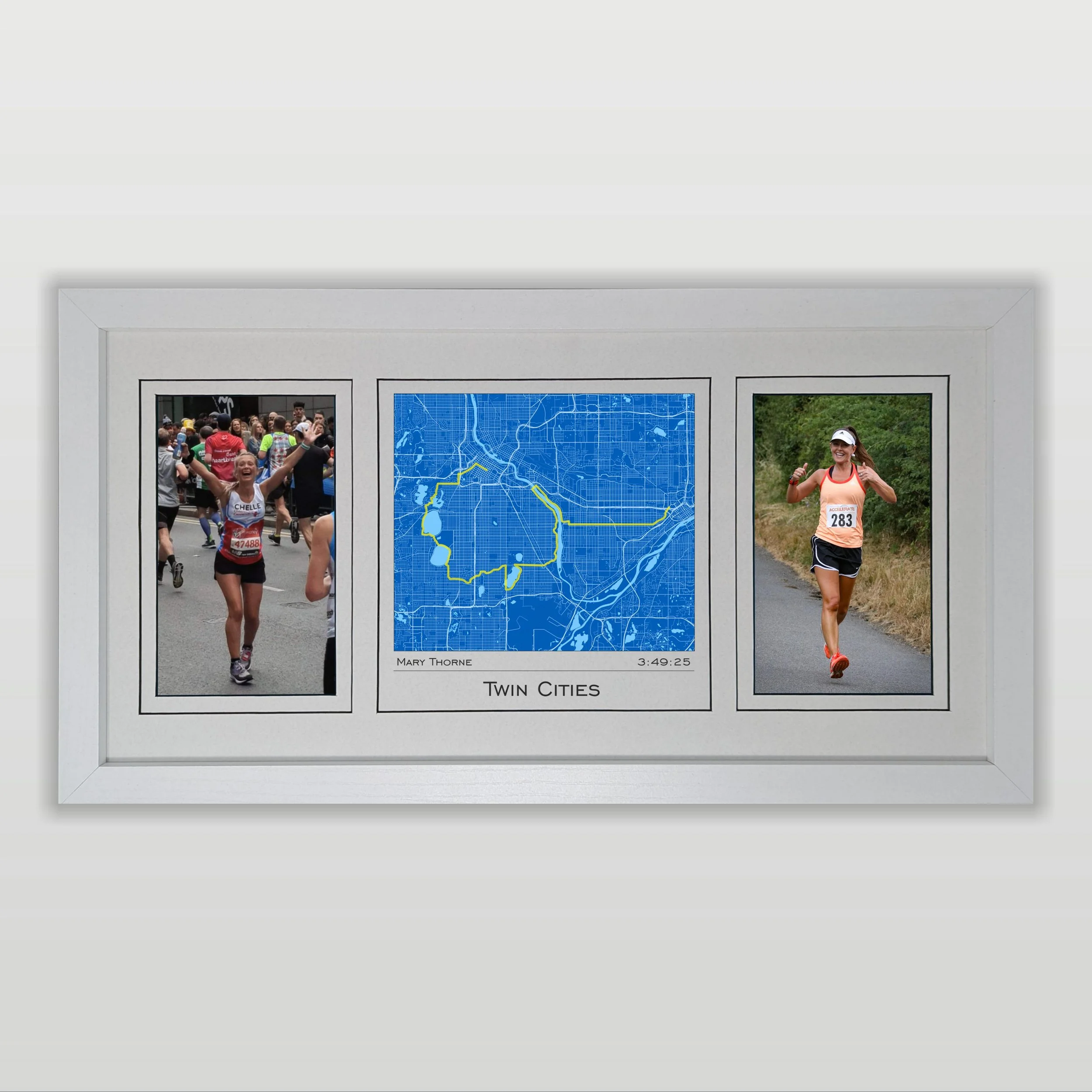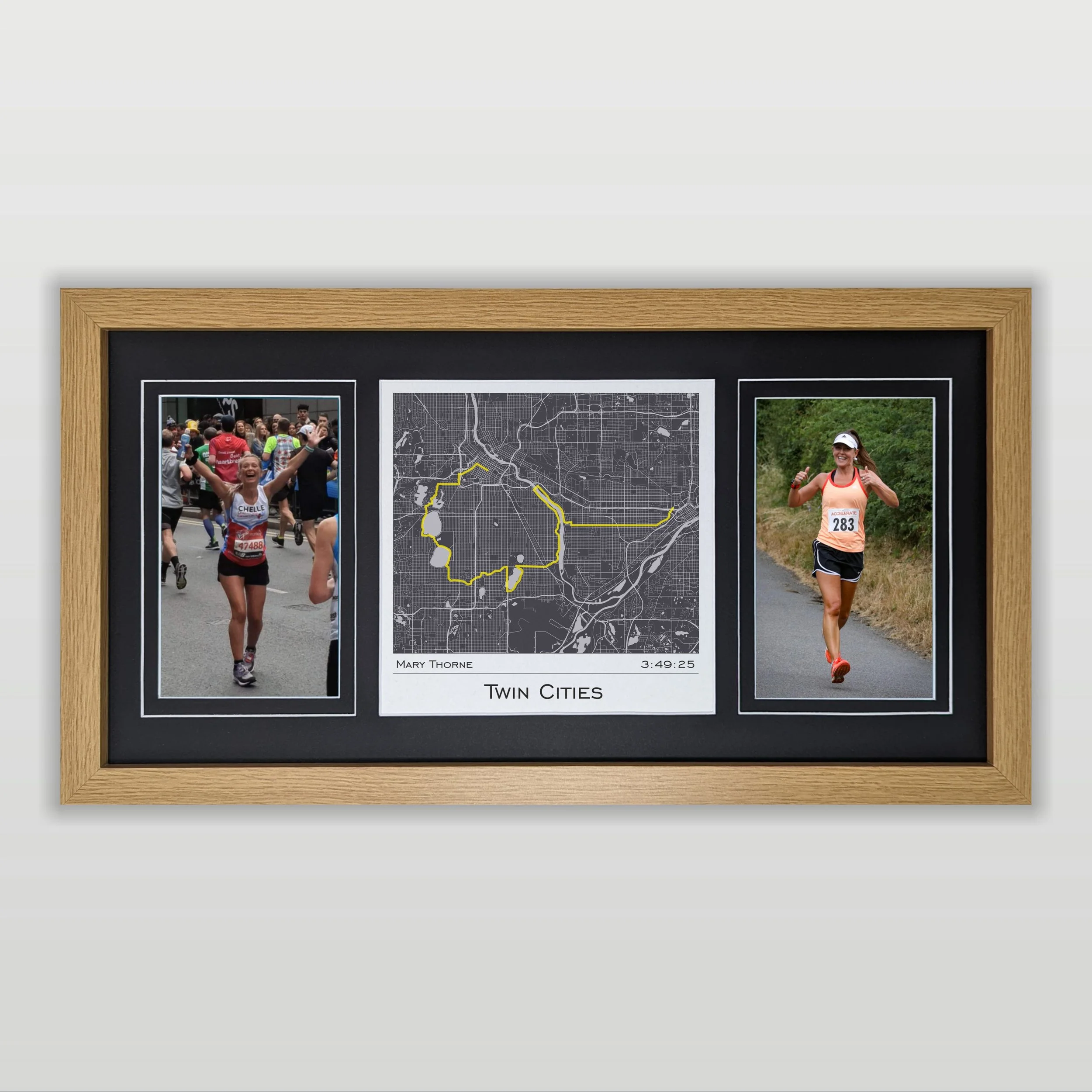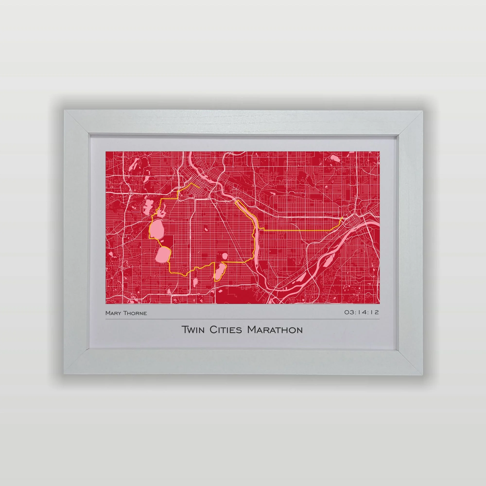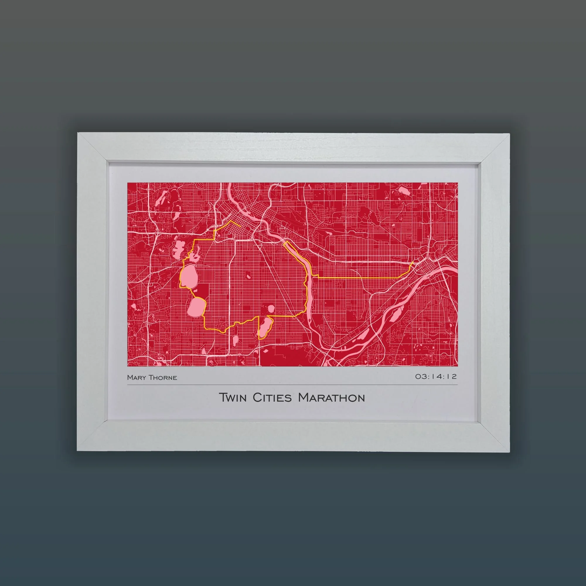 Create a beautiful Twin Cities marathon marathon route map and double medal display for your Twin Cities marathon marathon medals. All our Twin Cities marathon marathon route maps and double medal displays come framed as standard. Professionally printed on photographic grade paper and framed for a stunning finish. These can be made for “Any” run. (how?)